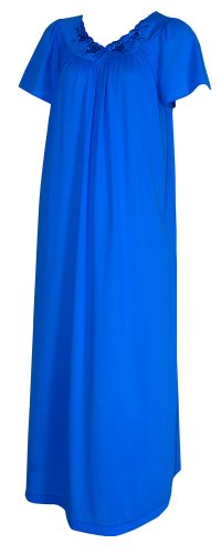 Sleep in style in this 53" long gown. Featuring flower petal embroidery at the neckline. Made of Opacitrique 100% nylon for flattering opacity. Colors: Sapphire, Periwinkle and Brilliant Pink. ...Read more
