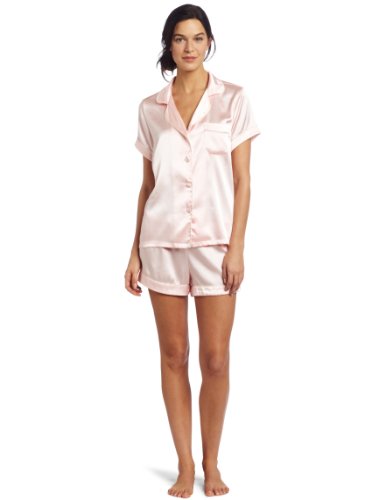 Dearfoams Women's Short Sleeve Piped Notch And Short Solid Pajama